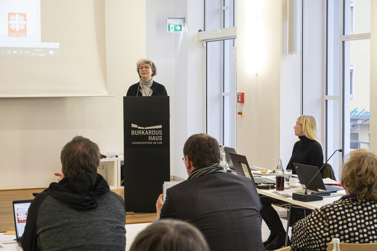Daran knüpfte Abteilungsleiterin Angela M. Lixfeld an, die aus der Arbeitsrechtlichen Kommission (AK) berichtete. „Nicht mehr der Einzelne steht im Fokus, sondern das Profil unserer Dienste und Einrichtungen“, so Lixfeld zur neuen Grundordnung. „Wir werden unseren Diensten und Einrichtungen Unterstützung anbieten, wenn es darum geht, sie als christliche Einrichtungen noch besser zu profilieren.“ Denkbar seien beispielsweise Fort- und Weiterbildungsangebote. Lixfeld informierte darüber hinaus zu neuen Tarifabschlüssen und den Herausforderungen, die unter anderem eine Inflationsausgleichszahlung mit sich bringen werde. „Natürlich wollen wir unsere Mitarbeiterinnen und Mitarbeiter fair entlohnen, aber für viele Dienstgeber stellt sich schon die Frage, woher sie Sonder- und Ausgleichszahlungen nehmen sollen.“