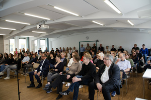 „Ich freue mich, dass so viele Mitarbeiterinnen und Mitarbeiter unserer Einladung zur ersten Personalversammlung des Jahres 2025 gefolgt sind, sodass sogar die vorbereiteten Plätze gar nicht ausreichen“, begrüßte Domkapitular Clemens Bieber, Vorsitzender des Caritasverbandes für die Diözese Würzburg e. V. (DiCV), die vielen Mitarbeitenden, die sich anlässlich der Veranstaltung am Vormittag des 22. Mai 2025 im Seminarraum eingefunden hatten. Die Mitarbeitenden, die keinen Sitzplatz mehr ergattern konnten, machten es sich deshalb kurzerhand im hinteren Bereich des Seminarraums an Tischen bequem, um der rund zweistündigen Veranstaltung gespannt folgen zu können.